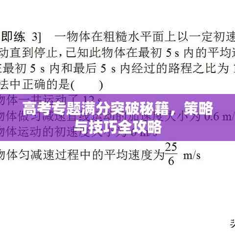 高考是每个学子人生中的重要阶段,专题满分是众多考生及家长追求的目标,如何在紧张的备考过程中实现高考专题满分突破,成为我们共同关注的焦点,本文将围绕这一核心,探讨有效的备考策略和方法。